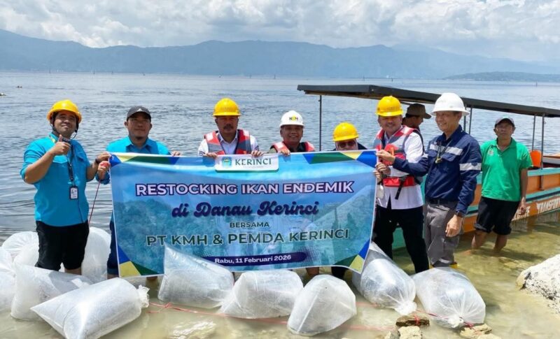 GLOBALJAMBI.CO.ID – Pagi yang sejuk di tepian Danau Kerinci, Rabu (11/2/2026), menjadi momen penuh harapan bagi para nelayan. Bupati Kerinci Monadi turun langsung bersama jajaran dinas terkait dan PT KMH melakukan penebaran kembali (restocking) ribuan ikan endemik ke perairan danau, sebagai langkah nyata menjaga kelestarian ekosistem sekaligus meningkatkan kesejahteraan masyarakat.
