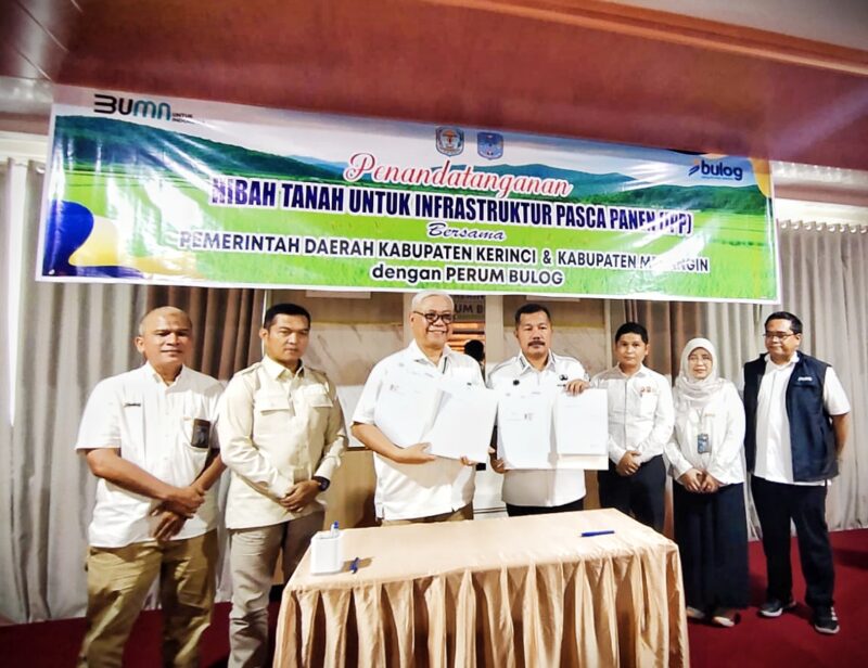 GLOBALJAMBI.CO.ID – Pemerintah Kabupaten Kerinci terus memperkuat sektor pangan dengan langkah konkret. Pada Rabu (28/04/2026), Pemkab Kerinci menandatangani Naskah Perjanjian Hibah Daerah (NPHD) bersama Perum Bulog. Kesepakatan ini sekaligus menandai komitmen serius pemerintah daerah dalam menjaga stabilitas pangan dan meningkatkan kesejahteraan masyarakat.