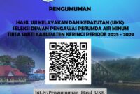 GLOBALJAMBI.CO.ID, Kerinci – Panitia Seleksi Calon Dewan Pengawas Perusahaan Umum Daerah (Perumda) Air Minum Tirta Sakti Kabupaten Kerinci resmi mengumumkan hasil seleksi akhir untuk…