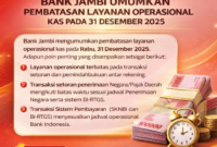 GLOBALJAMBI.CO.ID, JAMBI – PT Bank Pembangunan Daerah Jambi (Bank Jambi) secara resmi mengumumkan penyesuaian layanan operasional kas menjelang penutupan tahun buku 2025. Penyesuaian ini…