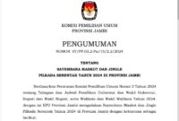 GLOBALJAMBI.COM, JAMBI – Komisi Pemilihan Umum Provinsi Jambi menggelar sayembara Maskot dan Jingle Pilkada serentak tahun 2024 di Provinsi Jambi. Tak tanggung – tanggung,…